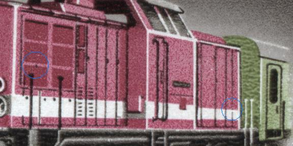 1) schwarzer Punkt im vorderen Teil der Lok ( 6er Feld ) + letzte Linie der Lok gebrochen