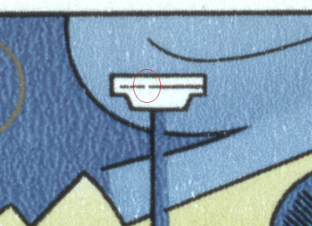 1) Blauer Punkt über der 1 von 1976 + rechte untere Linie gebrochen