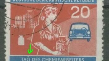 hier einmal Mi.-Nr. 878 mit "rechter Schornstein eingekerbt"