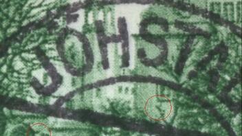 Däfür aber bei der 357 etwas anderes gefunden, Fehlstelle im Rahmen rechts.Allerdings glaube ich hier nicht an einen PF,könnte evtl. am Papier der Marke liegen![]()