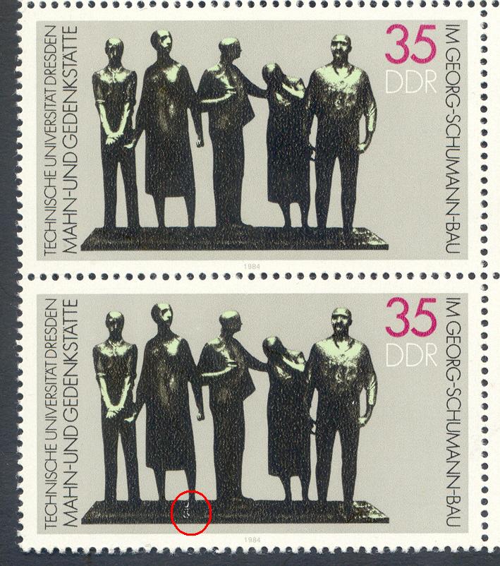 habe eine 2897 gefunden; Beschädigung am rechten Fuß der 2. Figur von links. Obere Marke als Vergleichsstück.