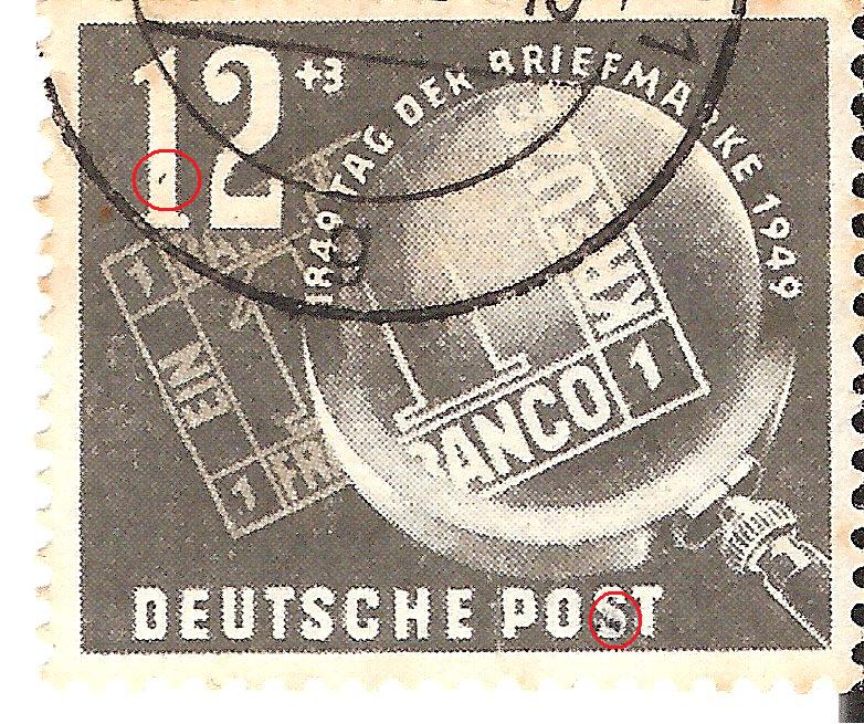 Ich kann ein Bild eines Paares der 243 zeigen, auf dem neben dem eigentlichen Fehler "blauer Punkt links im Postboten über der Tasche" dieser zusätzliche ENORME Fehler zu sehen ist.
