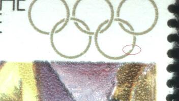 1) Kerbe im unteren rechten Olympiaring