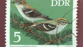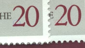 Bei der linken Marke ist die Oberkante des Farbbandes rechts im Gegensatz zur Vergleichsmarke ziemlich dunkel. Hat jemand eine Idee dazu??