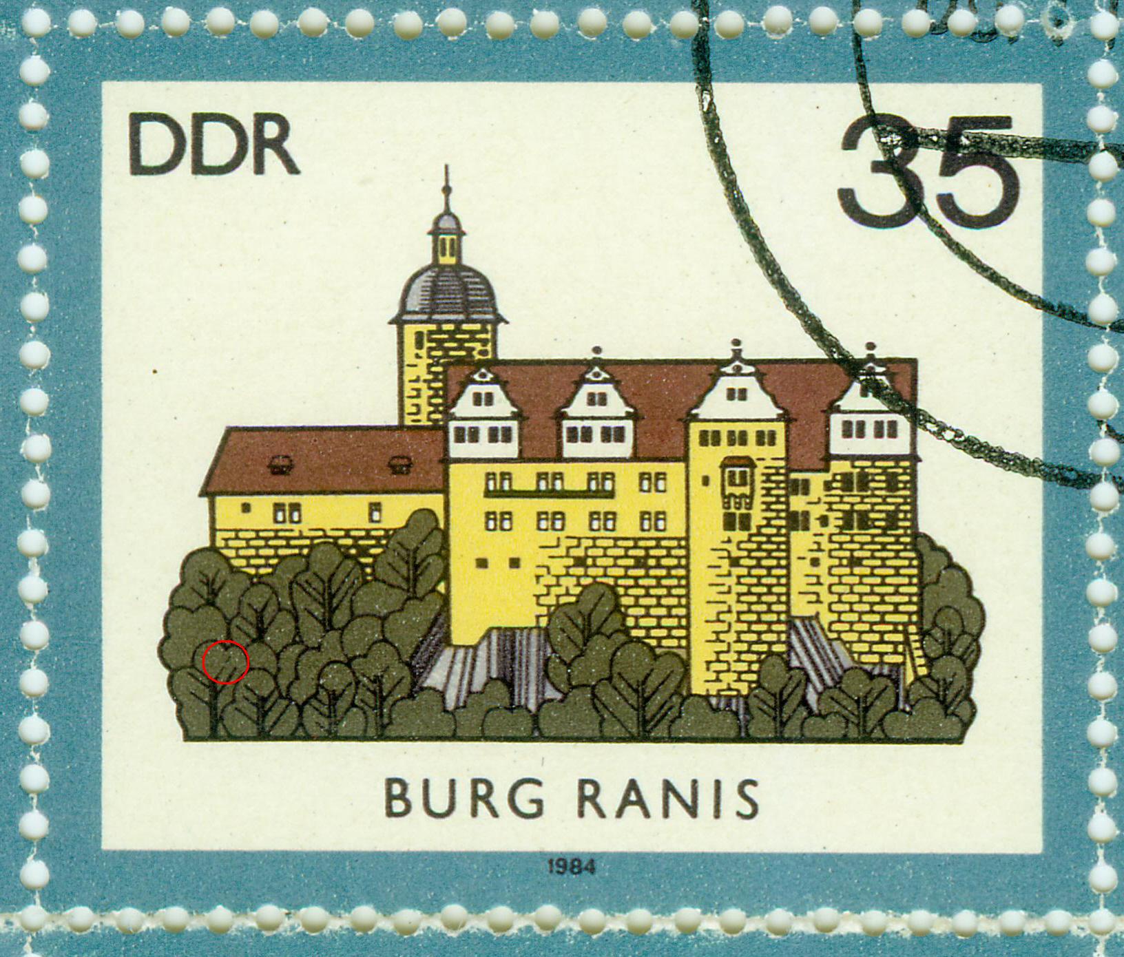 1) Fleck links oben nach dem R von DER