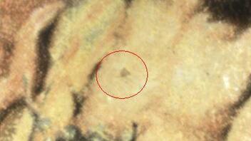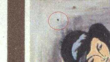 3) schwarzer Punkt/Fleck links über Frauenkopf