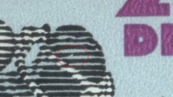 da war ich wohl etwas übereifrig. Habe noch mal einen Vergleichsscan gemacht. Wie zu sehen, ist dieser Fleck auch bei der "Normal"marke vorhanden. Gibt zwar minimale Unterschiede dieses "Fleckes", doch das wäre "Krümelkackerei", habe einfach nicht richtig hin gesehen.
