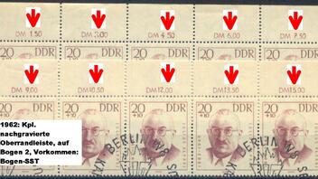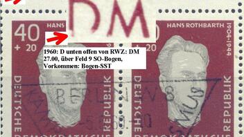 Als einziges ist mir auf Feld 42 der Bogen des ersten D von DDR aufgefallen, hat unten rechts eine deutliche "Kerbe"