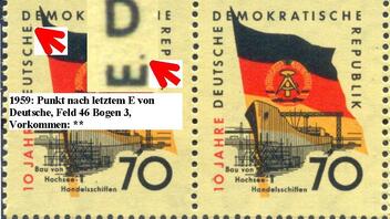 Habe bei folgender Marke einen roten Punkt zwischen D und E von DEMOKRATISCHE entdeckt. Ich hoffe Ihr könnt es erkennen und mir sagen um was es sich handelt! ![]()