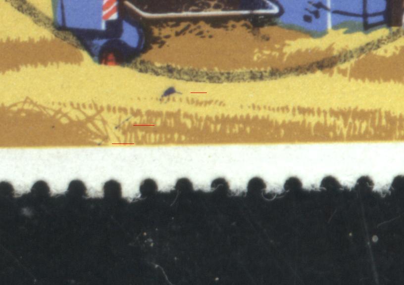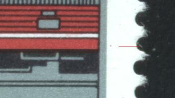 Untere Marke: außerhalb des rechten Rahmens neben der E-Lok ein roter Punkt. Im Original ist dieser Punkt einwandfrei ROT ! Alles DZF ??