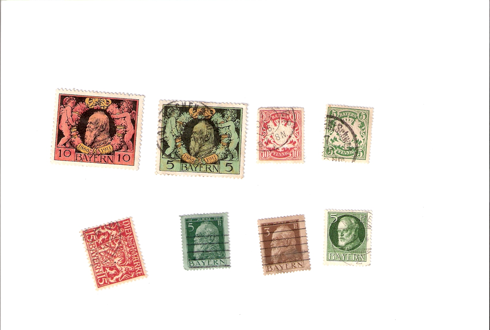 marken aus bayern - der zustand ( siehe foto ) die 10 pfennig marke ( bayern) hat leider ein kleines loch - ansonsten würde ich den zustand als gut bewerten (?)