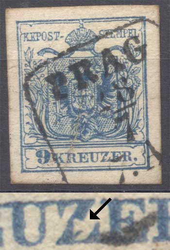 Auch diese 9 Kreuzer Marken haben interessante Merkmale. Daher würde ich gerne wissen, ob sie Plattenfehler oder Druckzufälligkeit sind.