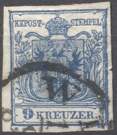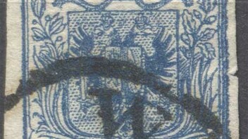 Bei der dritten Marke sieht wie eine abgenützte Platte: Rechts oben fehlt ein Teil des inneren Rahmens ganz, und der außere Rahmen sieht an mehreren Punkten unterbrochen.