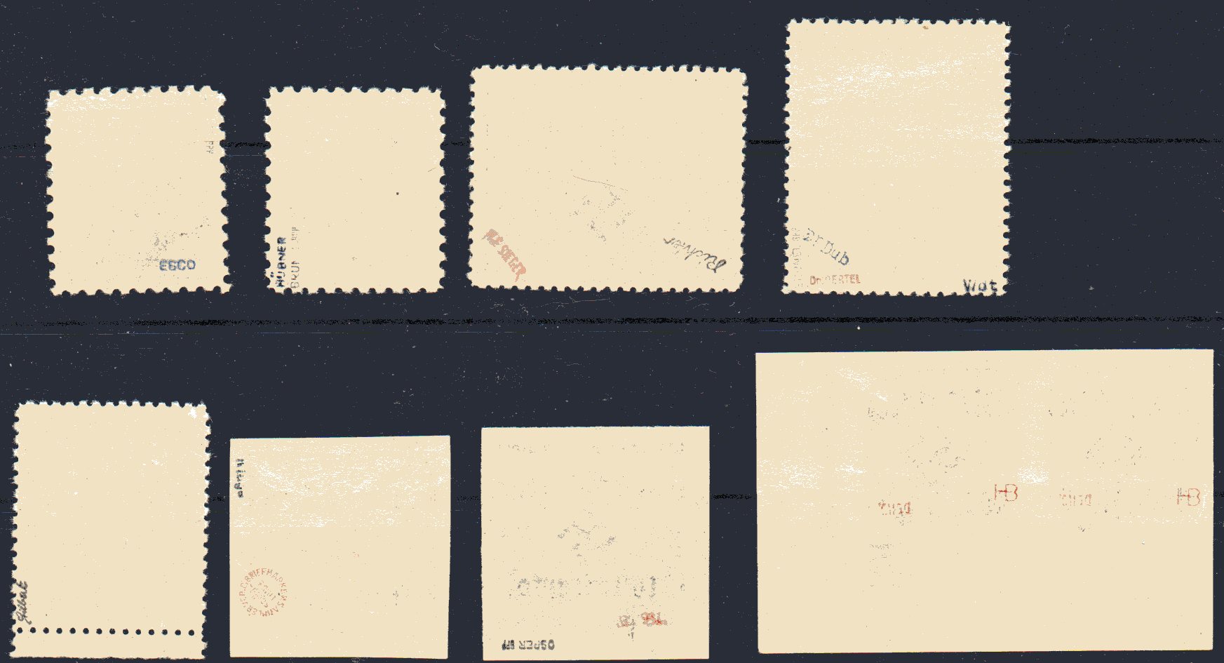 Herr Brunel hat mich übrigens vor kurzem in einem Telefonat davor gewarnt, daß auch sein BPP-Signum inzwischen gefälscht wird.Wir sehen hier Signaturen: ESCO, Hübner, H.E. Sieger, Dr. Oertel, Wat, Gilbert, Rundsignum Verein der Briefmarkensammler Schönlinde, Richter, K Bl. (?), HB.