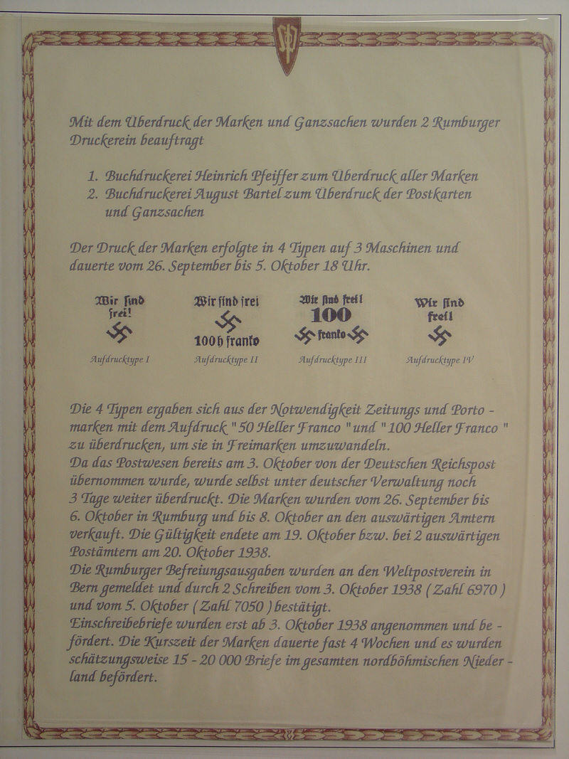 Wie bereits angekündigt, baut sich in Wien eine vorzügliche Spezialsammlung von Rumburg auf. Viele Plattenfehler und Besonderheiten habe ich in dieser Art noch nicht gesehen. Die ganze Sammlung ist ausstellungsmäßig auf Blättern aufgezogen. Es steckt viel Arbeit und Zeitaufwand in diesem Exponat und der Sammler besticht durch fundiertes Fachwissen!