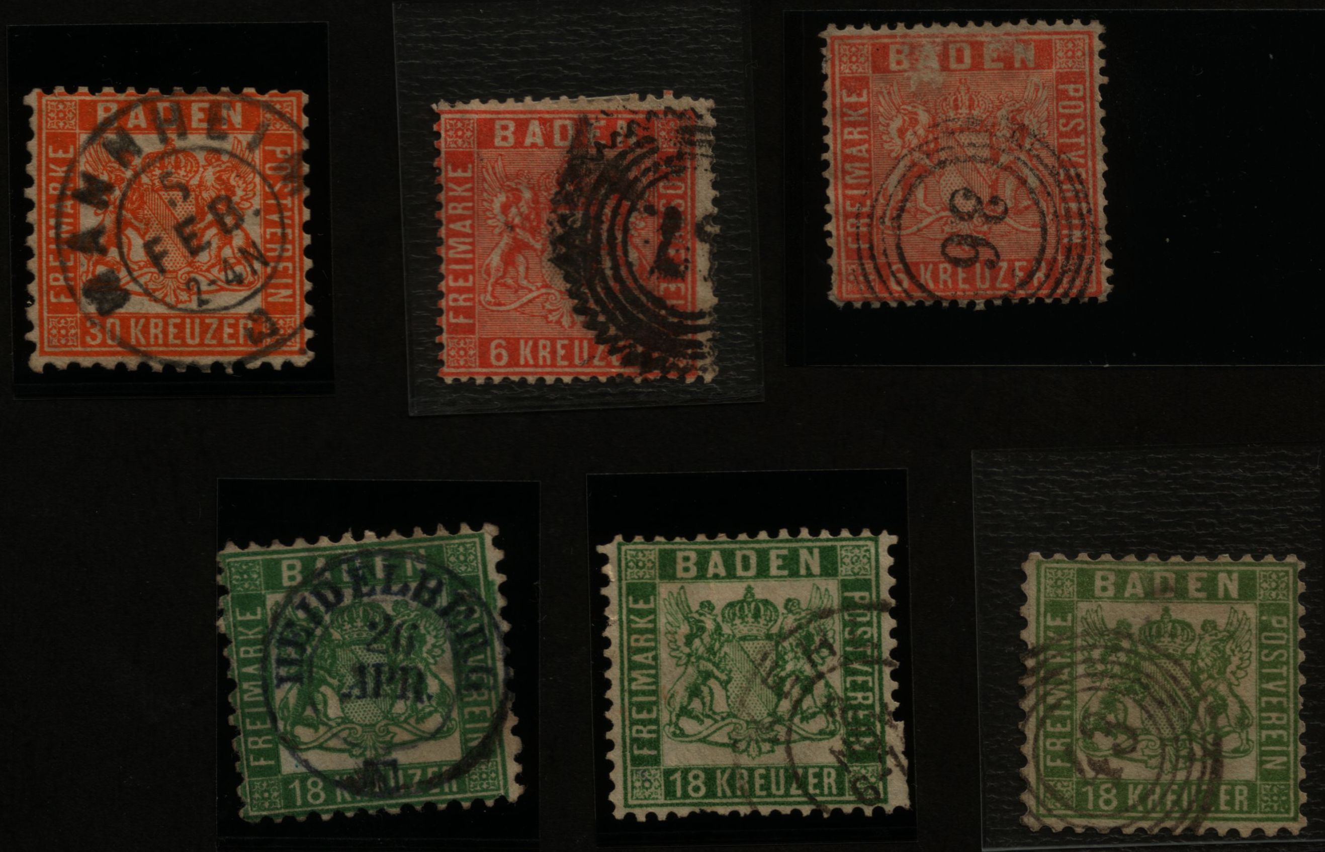 Bei den 18 Kreuzern könnte die erst gezeigte mit Abstemplung Mannheim eine B sein (Katalogwert € 1800,--) Die letzte mit Abstemplung 43 (Freiburg) eine 21a. Die mittlere ist aufjedenfall zweite oder dritte Wahl da die Zähnung beschädigt ist und die Abstemplung doch sehr undeutlich ist.