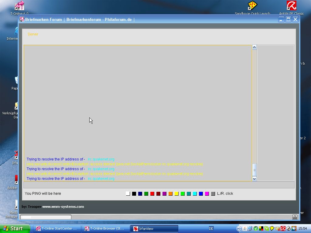keine Smiliey's und die Schriftfarbe erscheint auf weissem Hintergrund.Wenn ich den unteren Link benutze, klappt alles problemlos. Ich bin wieder im alten Chat mit all seinen Funktionen. Und er lief, wenigstens solange ich drinn war, völlig einwandfrei.