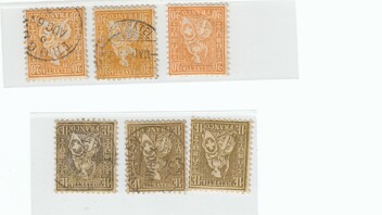 Michel-Nr. 24...sitzende Helvetia....bewertet mit Fr. 6.00/** und Fr. 4.00/gestempelt. Hier geht die Farbpalette von gelborange, hellbräunlichorange, rötlichorange bis rotorange.