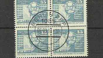 und einen Viererblock der Nr. 2506, bei der die rechte obere Marke eine abgeplatzte Ecke aufweisst.