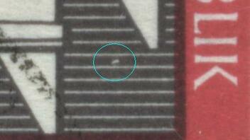 Auf dem ersten Bogen, den ich in der Bogendatenbank auf koepfe1.de durchgesehen habe, war das Merkmal auf f11, 12, 18, 19, 21, 22, 27, 28, 29, 30, 32, 33, 87, 88, womit es sicher kein "seltener PF" wäre, sondern eher eine Type. Interessant in Zusammenhang mit dieser Lokalisation wäre vielleicht f58, da ist der kleine rechte Strich deutlich verlängert.