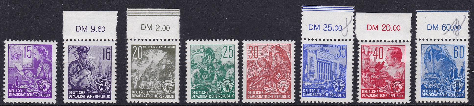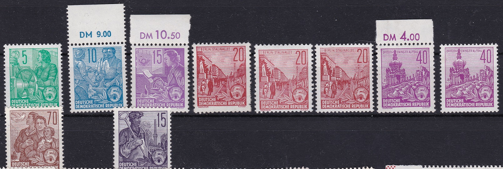 Hier sind jetzt mal einige Aufdruck-Marken aus der Serie 5-Jahres Plan ohne