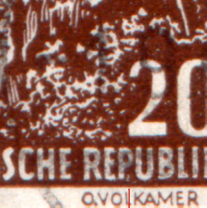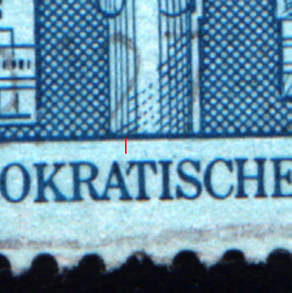 Mittlere Marke: Verdickung des Rückens vom R von Demokratische, sowie fast mit A verbunden ?