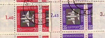 hier noch mal aus der Dauerserie "Sozialistischer Aufbau", dieses Mal die Nr. 2521: Fehlende Fenster im rechten Gebäude (Bogenentwertung 6.10.81).
