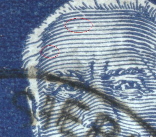 Bei der linken Marke ist die Oberkante des Farbbandes rechts im Gegensatz zur Vergleichsmarke ziemlich dunkel. Hat jemand eine Idee dazu??