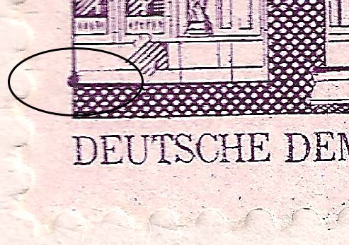 hierbei handelt es sich um ein Fm (Feldmerkmal eines 10er Klischees) der Type II im KII auf Feld 4, d.h. in jeder senkrechten Spalte 4, bzw. 9 eines Bogens kann dieses Merkmal mehr oder weniger vorkommen.