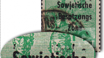 Der Fehler bei der MiNr. 412 kommt in dieser Form sowohl bei der II. als auch bei der III. Ausgabe vor und variiert analog des hier gezeigten 405 in seiner Ausprägung.