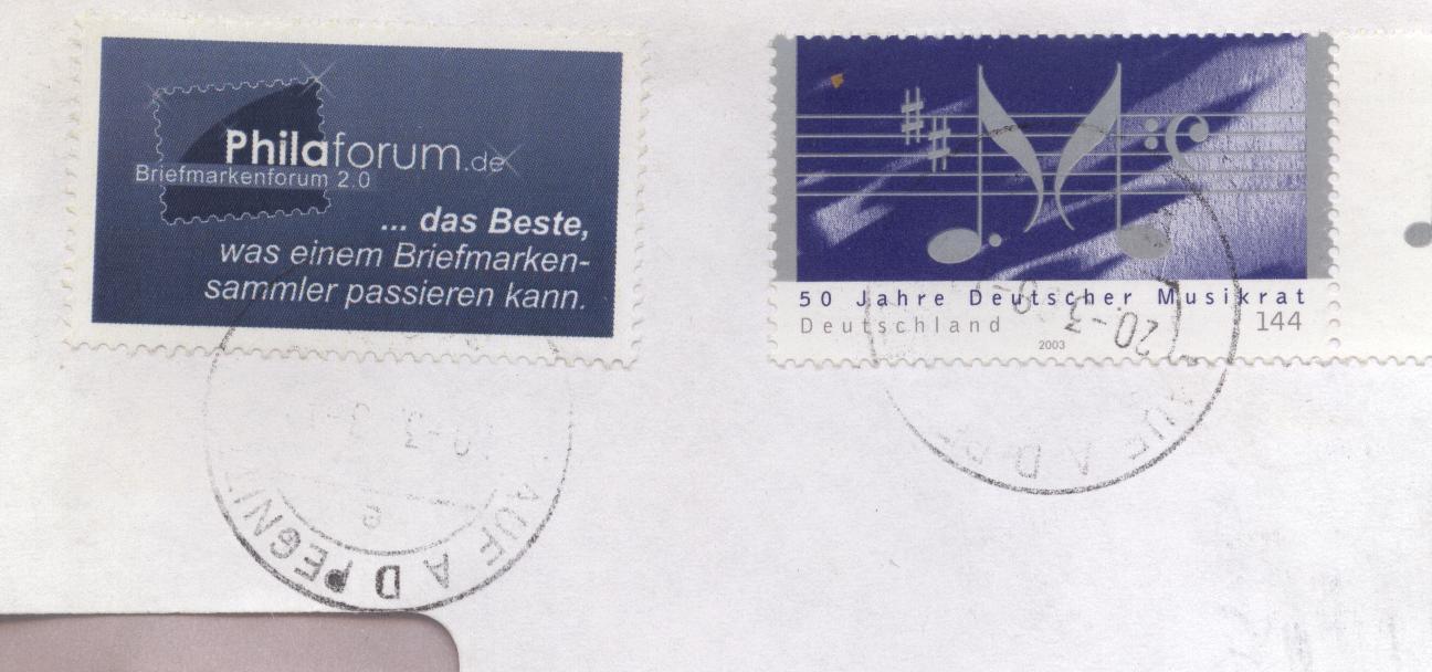 (Vor allem, da bei einem Brief die Leute von der Post die Vignette vom Philaforum abgestempelt haben und die 5 Briefmarken drumherum überhaupt nicht :D 8-) )