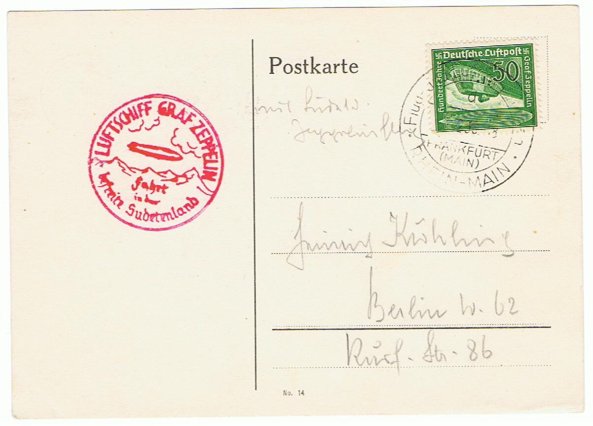 Habe ich hier auch etwas zu tun mit Zeppelin Post ? Weiss ich nicht Sieger Nr oder Portogerecht usw. Alle information danke ich Ihnen im voraus.