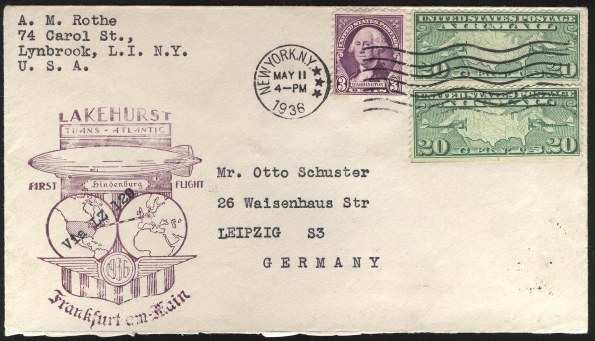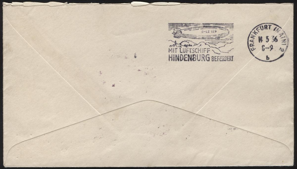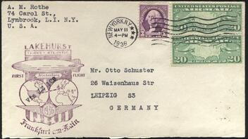 Zur Feier des Tage ein Beleg von der Rückfahrt des LZ 129 Hindenburg von Lakehurst nach Frankfurt vom 12. - 14. Mai 1936, Sieger Nr. 408C. Die Amerikaner haben dazu einen wunderschönen Sonderbestätigungsstempel heraus gebracht.