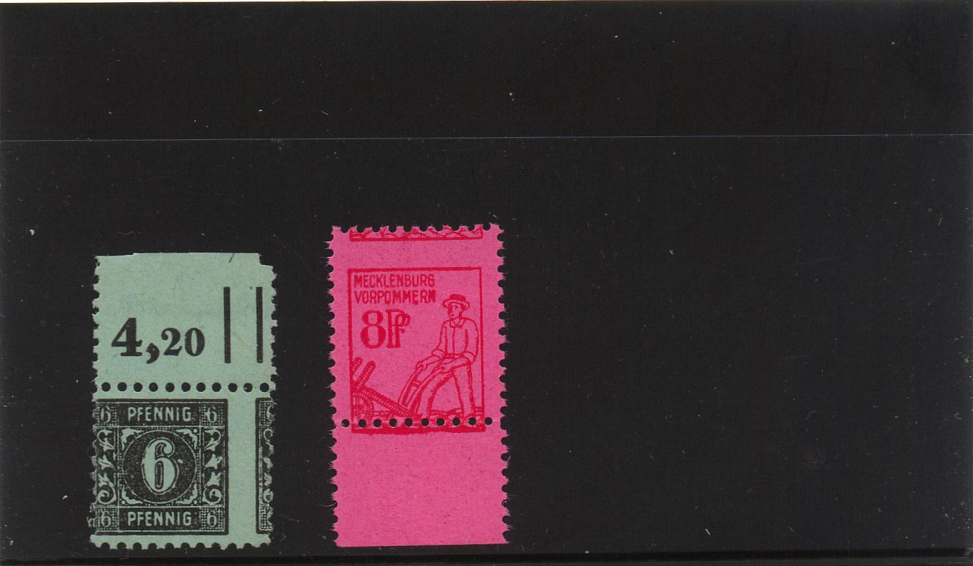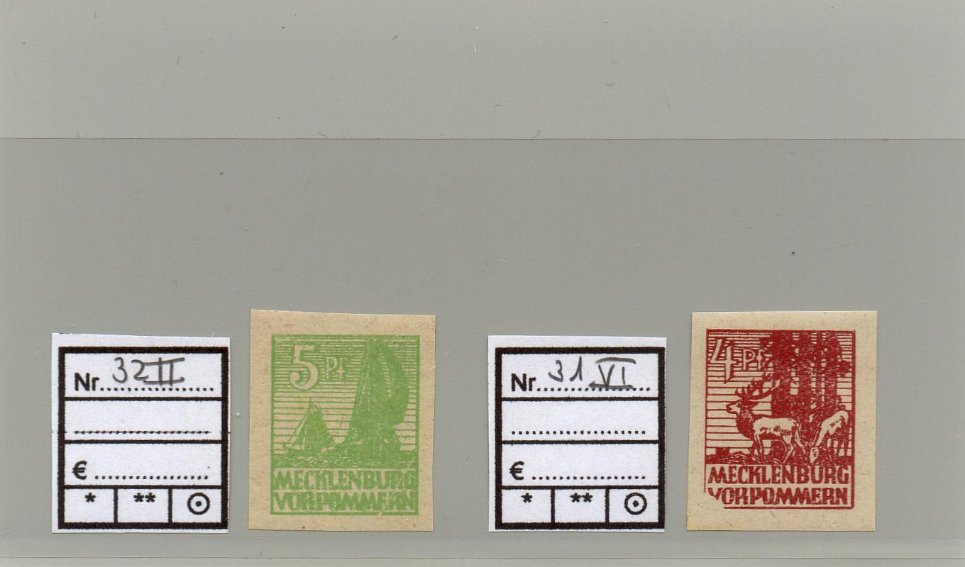 Aaaaaaber, oh, da fanden sich gerade noch 2 "Stückchen" bei den Marken von Mecklenburg-Vorpommern, und zwar die PLF 32II (schräger Riß unten rechts) und 31 VI(linke untere Ecke gebrochen)