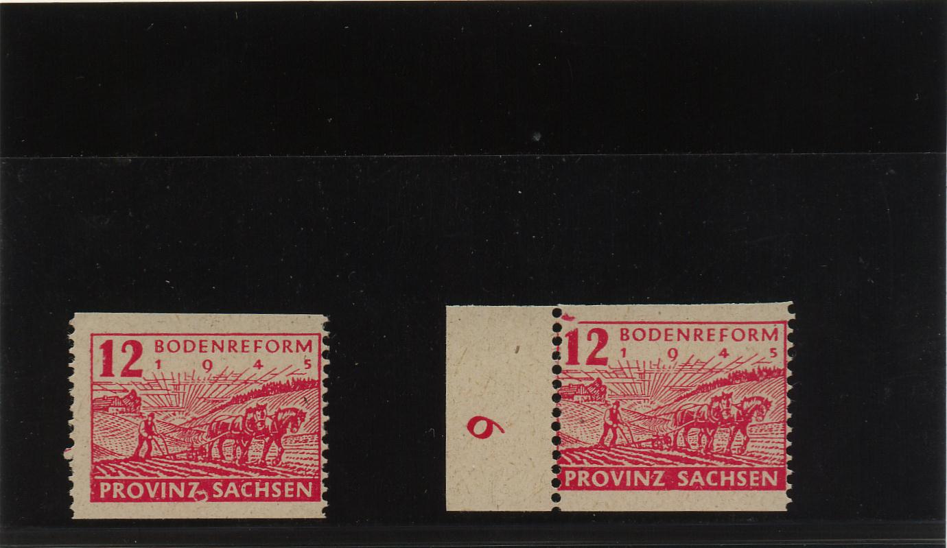 Hier allerdings keine Abart, sondern eine Postmeistertrennung aus Wittenberg-Lutherstadt (Provinz Sachsen), Mi.Nr. 86 C. Papier und Farben kann ich am Scan nicht bestimmen.