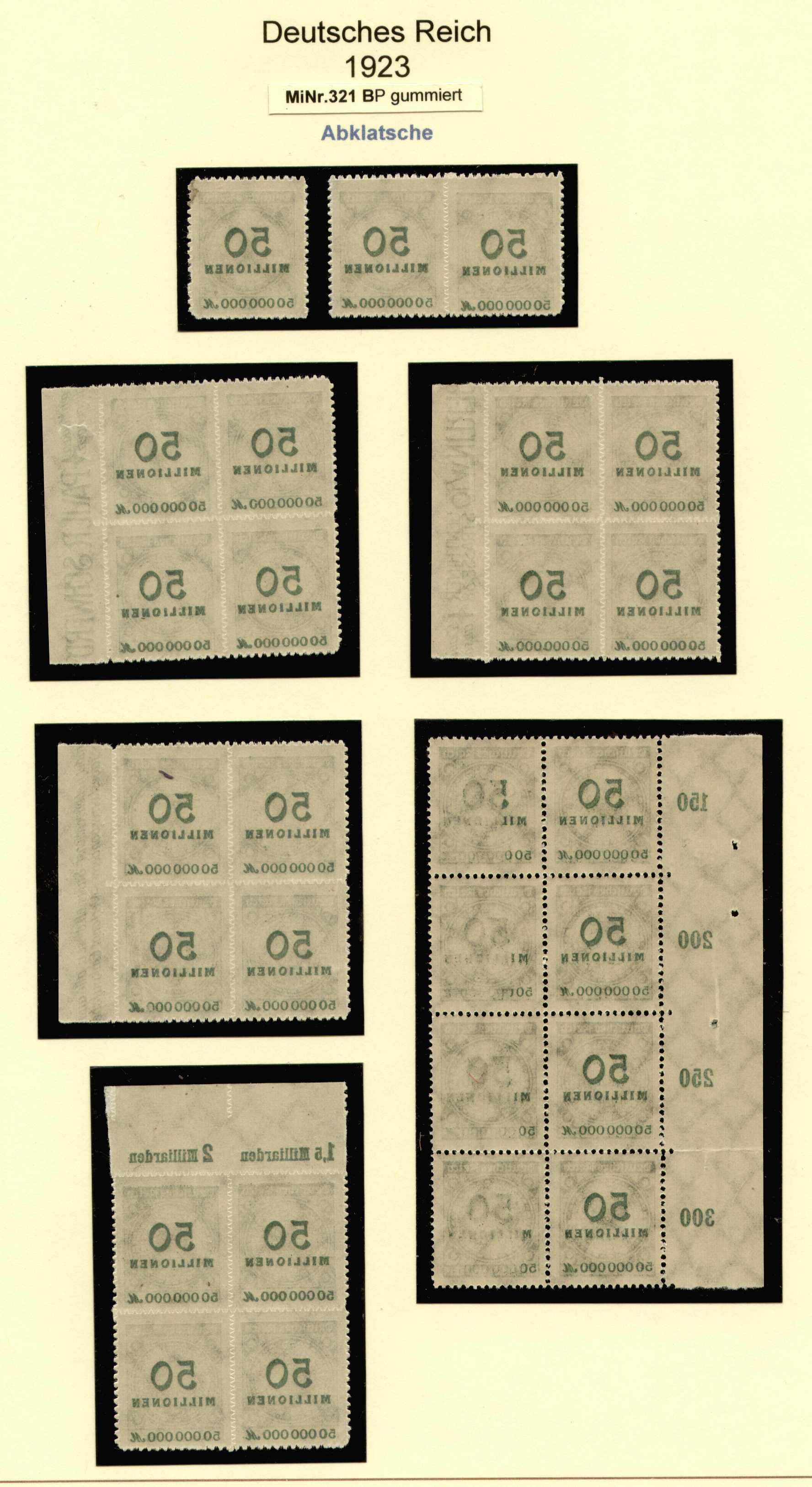 Abklatsche zählen zwar nicht zu Abarten, allzuviel Euronen sollte man darin nicht investieren, aber nach dem Standeskodex der Druckereien sind diese Exemplare eben doch nicht so ausgefallen, wie das ursprünglich geplant war, weil die Markenbogen nach dem Drucken zu rasch und zu viel aufeinander gestapelt wurden, so dass sich die noch frische Druckfarbe mehr oder weniger deutlich auf der gummierten Seite des darunterliegenden Bogens markieren konnte (nicht zu verwechseln mit "Druck auf der Gummiseite" durch falsch eingelegte Bogen - das ist ein anderes Thema).