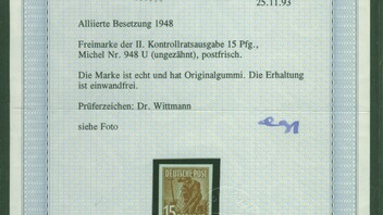 Hier eine Kontrollrat 15 Pf Arbeiterserie Mi.Nr. 948 U.
