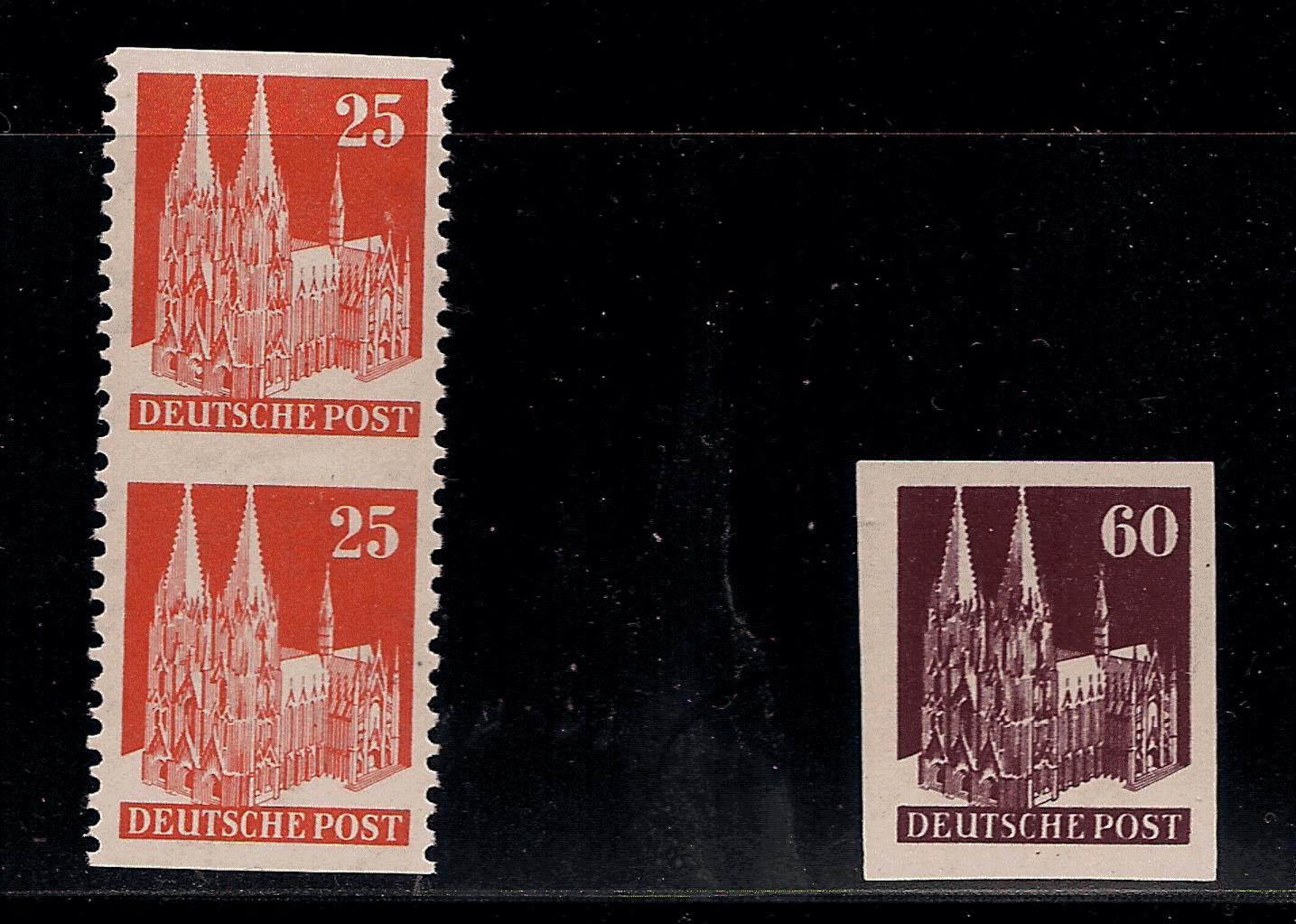 Ich hatte auch einmal ein paar 25 Pf-Werte, ungezähnt. Dazu sagte mir ein Bautenspezialist, das es sich um Makulatur handele. Es sei die falsche Type.....