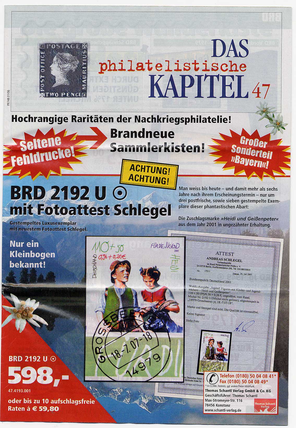 Scan I: Titelseite • BRD 2192 U FA • nur 10 Stück bekannt • Stempel "GROSSBEEREN 18.07.07"