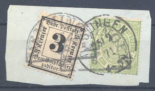 Zu den gefährdetsten Marken Bayerns gehören die 3 Portomarken der Kreuzerzeit. Die Marken selbst sind echt, nur die Entwertungen sind es oft nicht.