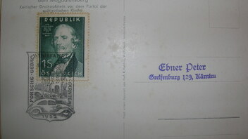 Porsche Gedächtnisfahrt Gmünd Kärnten 1.6.1952, Postkarte, gestempelt, € 75