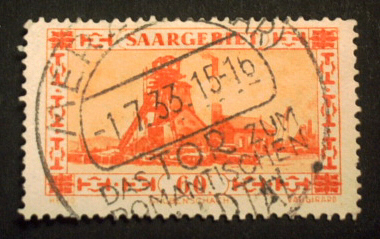 In Verbindung mit einem Stempel der auf einer Saarmarke abgeschlagen war.