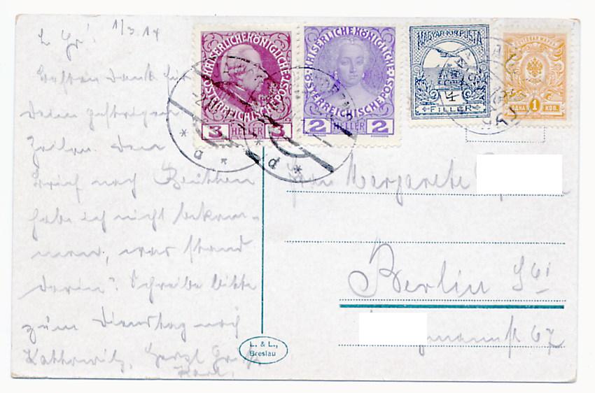 Mit entspr. Vermerken wurde sie am 22.03 an die Absenderin zurückgesandt. Diese hatte mittlerweile in Danzig ein Studium aufgenommen, so dass sie die rückgesandte Karte erst mit Verzögerung erhielt.