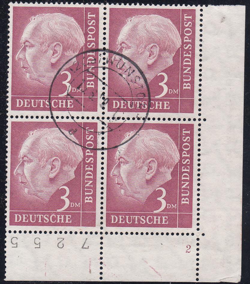 was ist denn so ein gestempelter 3 DM Heuss vierblock wert?