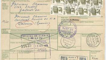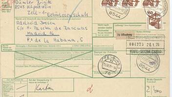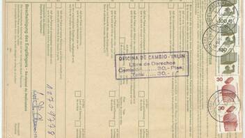 Mit ganz so alten Paketkarten wie die von Rainer kann ich hier zwar nicht mithalten, meine älteste kommt vom Brandenburger Tor. Die habe ich seinerzeit auch nur mitgenommen, weil die beiden Streifen jeweils eine Nummer haben ;)