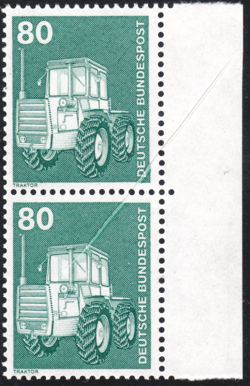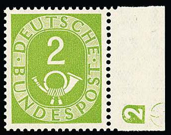 heuss oberrand, posthorn viererblock und notopfermarke mit anhängenden bogenrand
