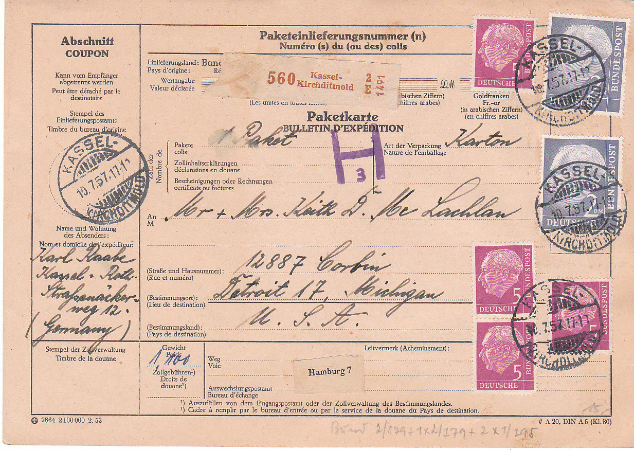 Ein Industriearbeiter hatte 1958 einen durchschnittlichen Wochenlohn von ~ 115 DM bei einer Wochenarbeitszeit von 46 Stunden (Quelle:http://www.chroniknet.de/indx_de.0.html?article=2201&year=1958). Vor diesem Hintergrund sieht man solch eine Frankatur mit ganz anderen Augen ;)