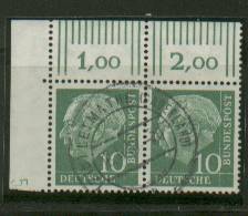Dann ein schönes Eckpaar der Heuss I 10 Pf gestempelt mit Druckerzeichen 5