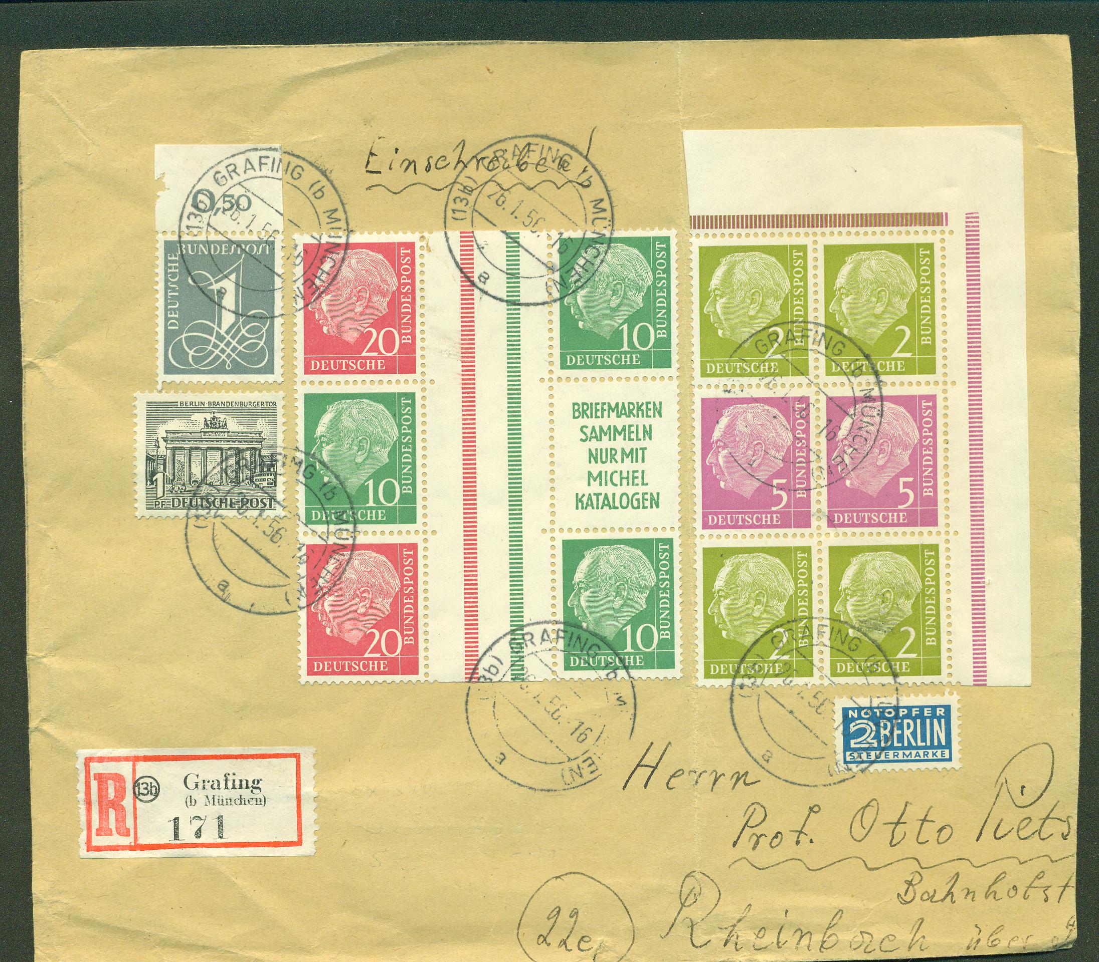 So, noch fix meine letzte Neuerwerbung hinterher: Bund kleine Bauwerke 80 Pf mit Formnummer 2 und Bogenzähler im senkrechten Paar auf Wertbrief. Den konnte ich bei ebay nicht liegen lassen und habe ihm für kleines Geld eine neue Heimat gegeben.