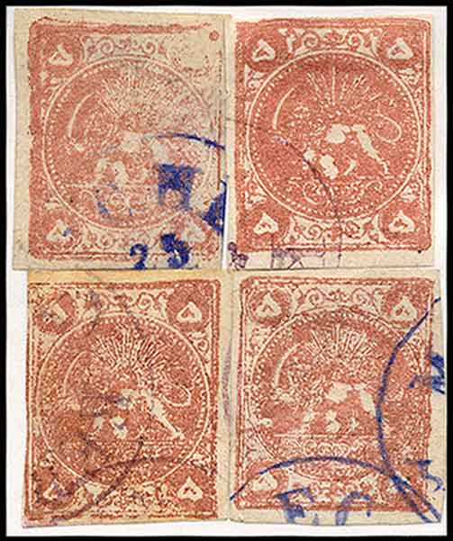 Vor dem Vertrieb der neuen Markenausgabe in 1933 versandte die zuständige Tibetische Behörde an die Postämter kleine Muster- oder Probebogen als Vorlagen, 2 Klischees wurden auf schmale Papierstreifen mit bedeutend größeren Markenabständen als in den Originalbogen gedruckt. Die betreffenden Klischeekombinationen tauchen später in keiner Platte auf. Die Musterbogen waren nicht gesondert gekennzeichnet und wurden zum Teil auseinander geschnitten und unerkannt als Frankatur verwendet. Es sind nur 3 solcher Musterbogen in dieser Wertstufe bekannt.